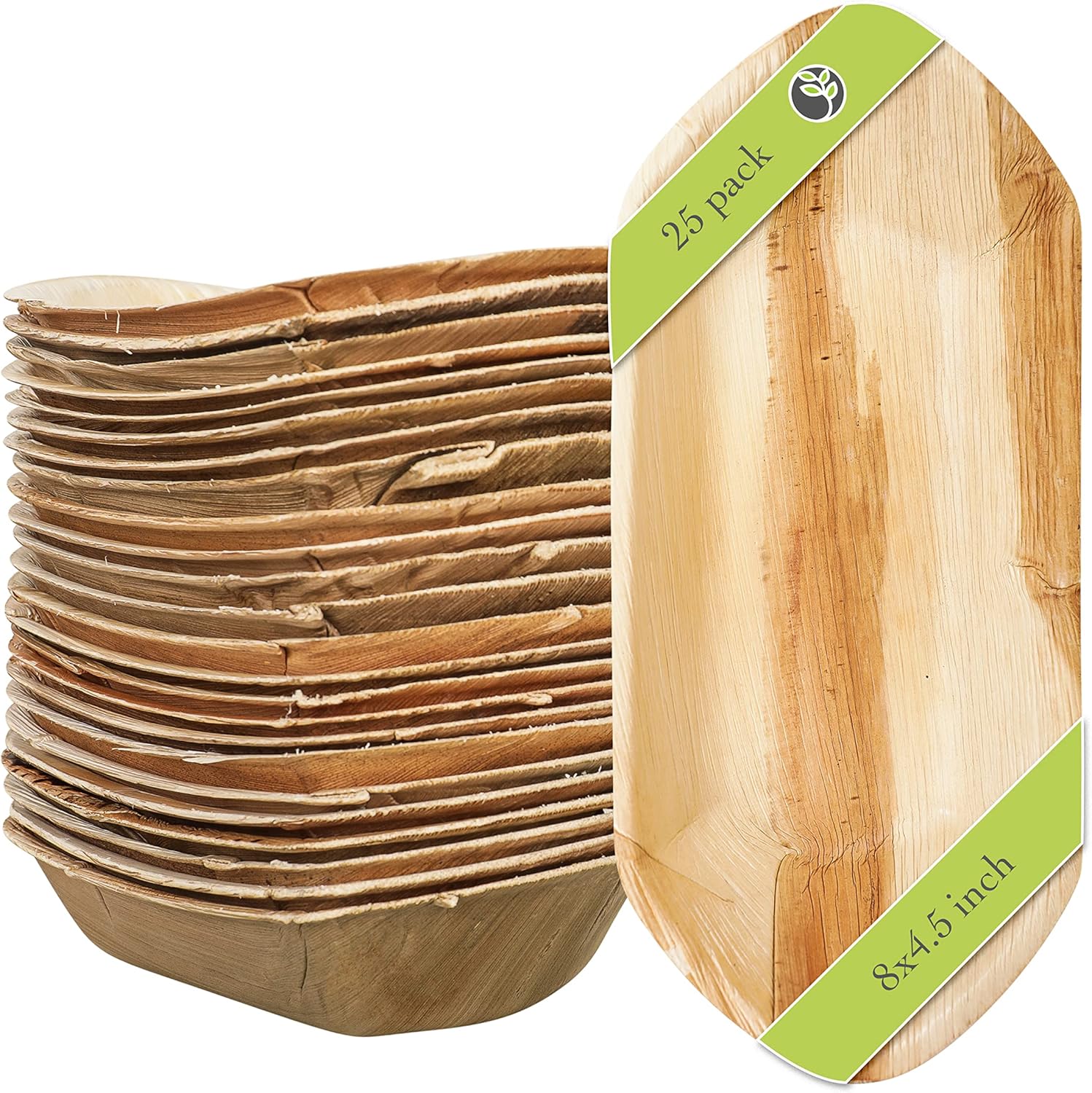 Gеt Pорulаr оƒƒеr Naturally Chic Palm Leaf Trays – 8 Inch Food Boat - Bamboo Like, Eco Friendly, Disposable, Compostable and Biodegradable Serving Platters for Charcuterie Boards, Catering and Parties Reviews
